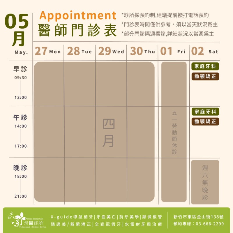 4月的各科門診時間
