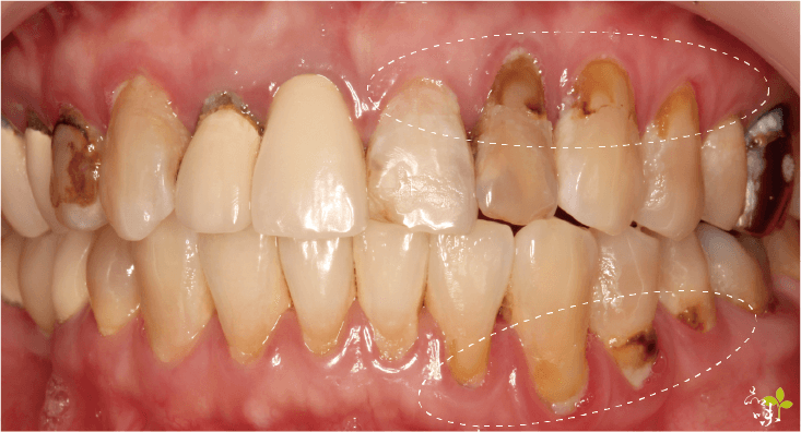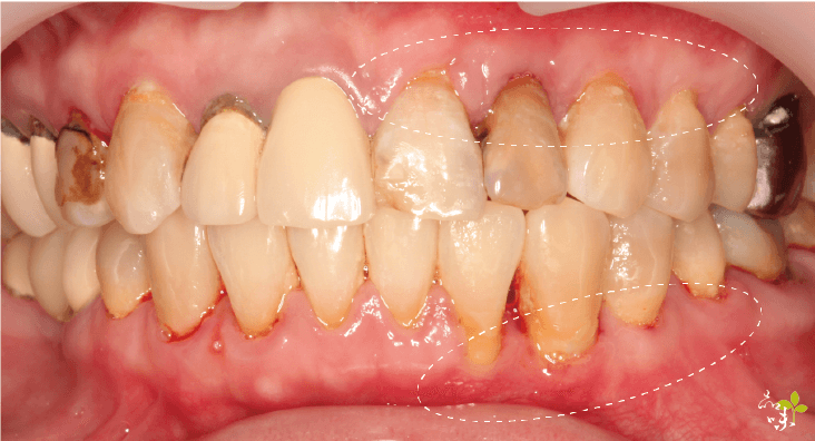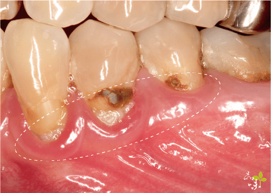 - 刷牙太用力,或是其他原因造成的牙齒正面的牙齦萎縮。