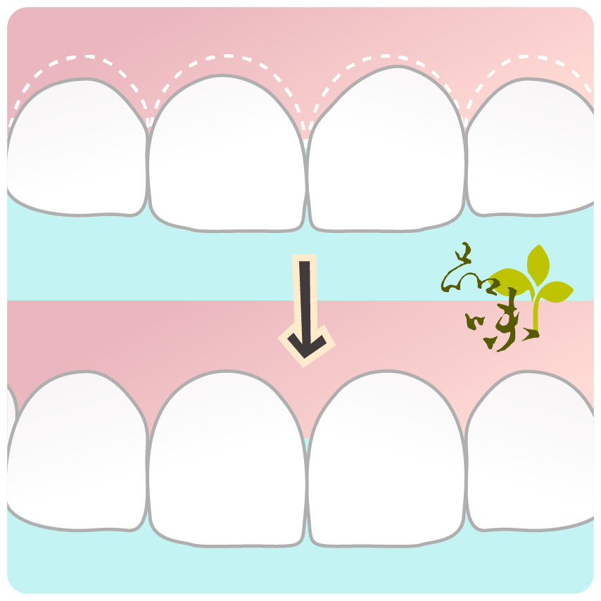 你可以將牙冠增長術比喻成「修剪花圃」的過程,原本被多餘的草叢(牙齦&齒槽骨)遮住的美麗花朵(牙齒)經過專業修剪後能更清楚地展現出來,整體花園(你的笑容)也就更美麗、更整齊。這個修整的過程就是「牙冠增長術」。
