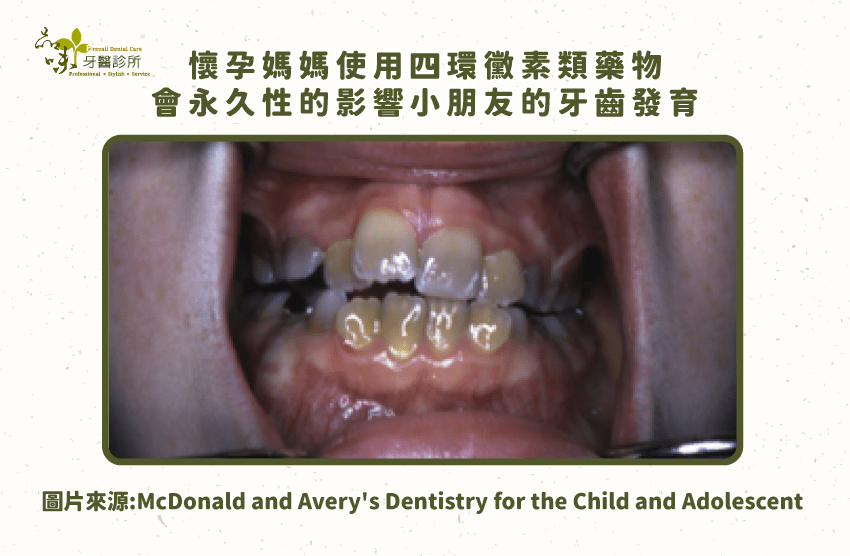 乳牙芽苞從懷孕第6~8週左右就開始形成,因此懷孕媽媽們若在孕期使用四環黴素類(Tetracycline)藥物,會影響小朋友的牙齒發育,而且影響可能是永久性的!