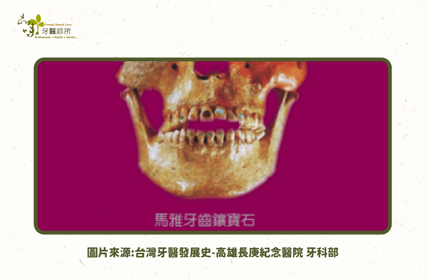 早在古瑪雅文明(西元前300年~西元900年),考古學家在馬雅貴族的頭骨中發現牙齒嵌寶石,視牙齒裝飾為身份、階級與宗教地位的象徵。