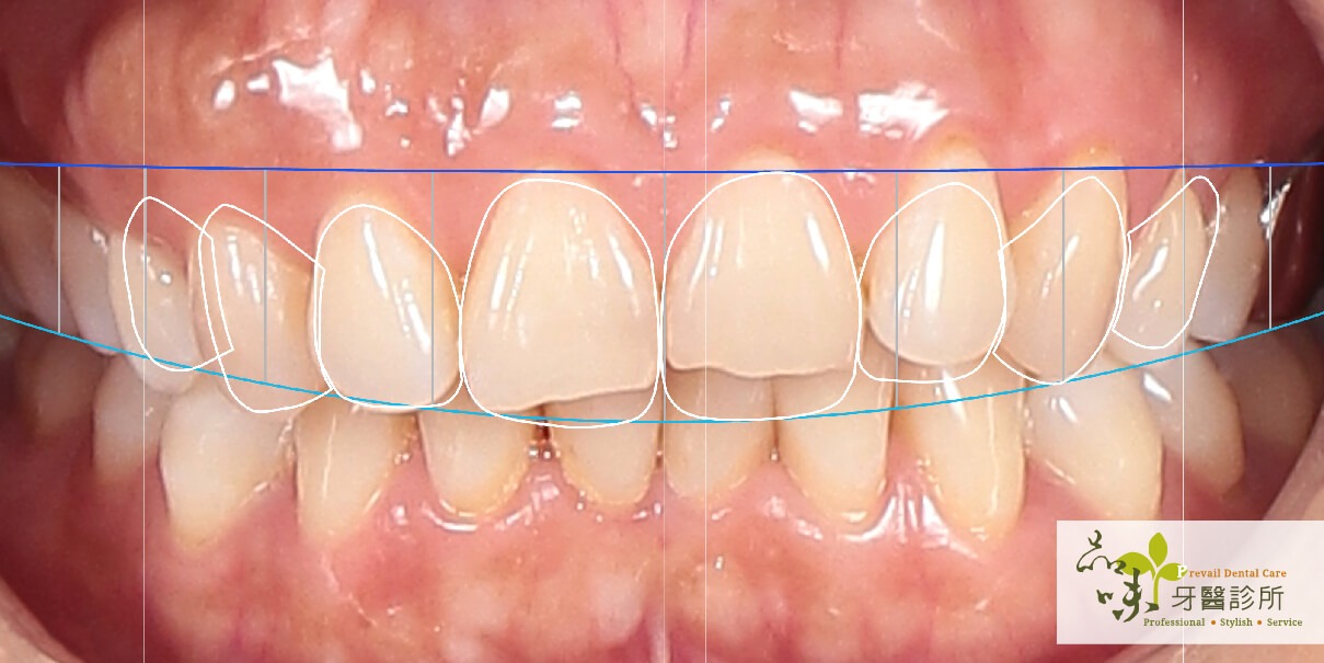 可以用數位設計分析出最適合您的微笑曲線,並預覽模擬您口中未來的笑容,預先看見治療後大致上的成效。